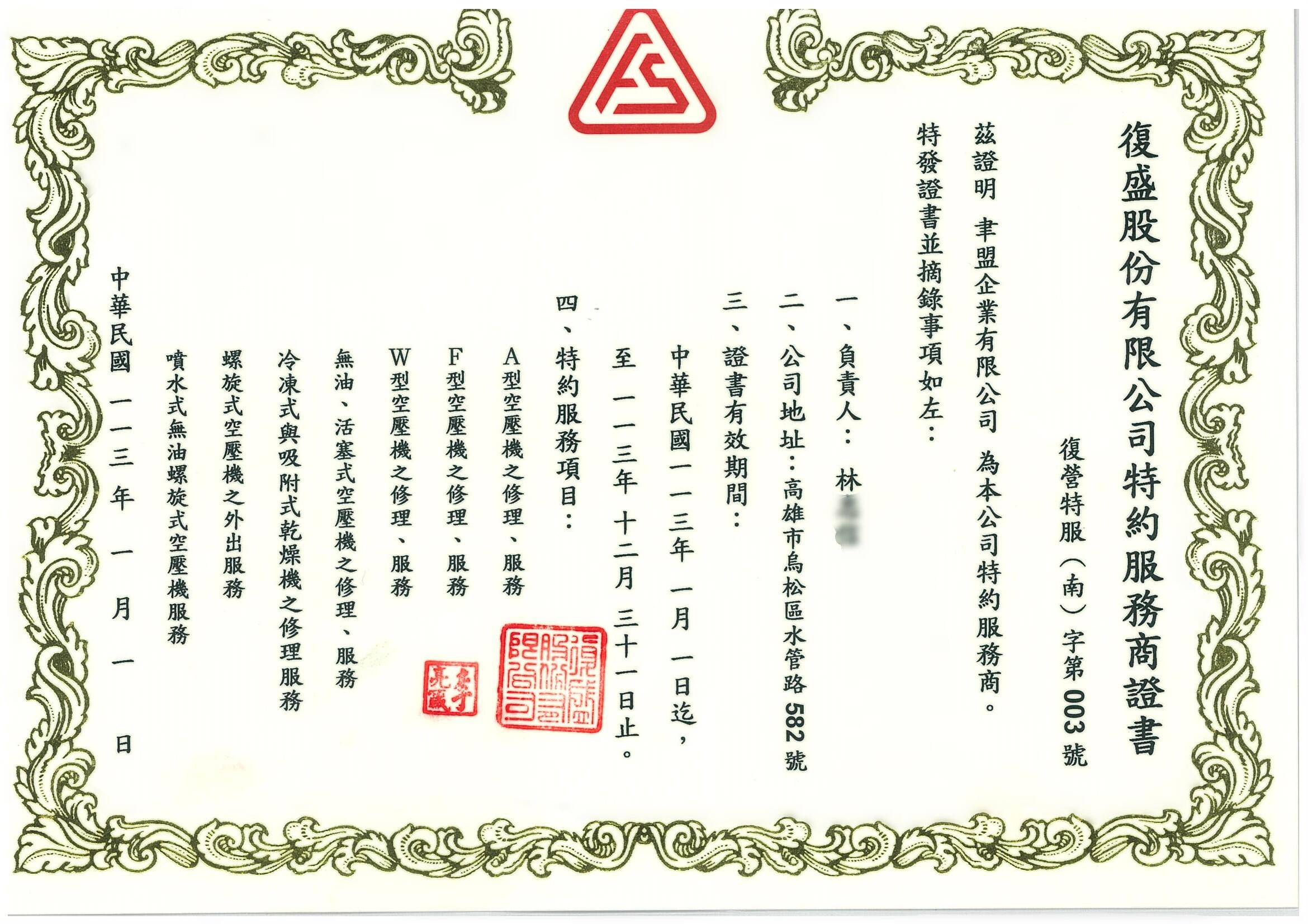 聿盟企業有限公司服務商證書
